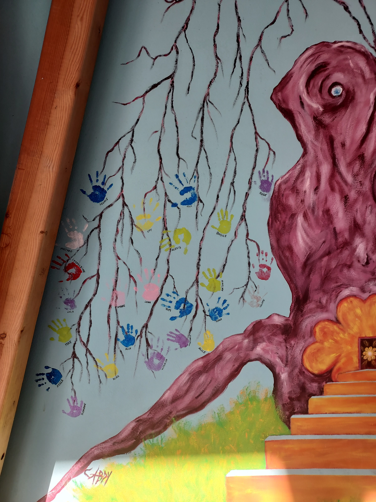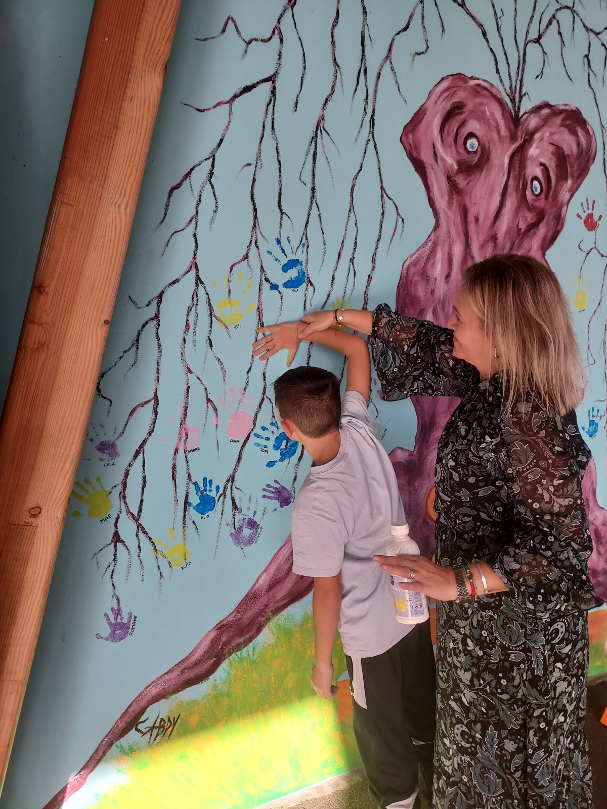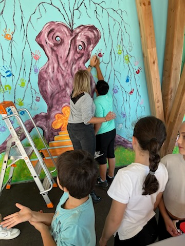 En 2024, l’équipe périscolaire maternelle a proposé de participer avec les enfants à la réalisation d’une fresque sur le mur du préau de la cour de récréation primaire.