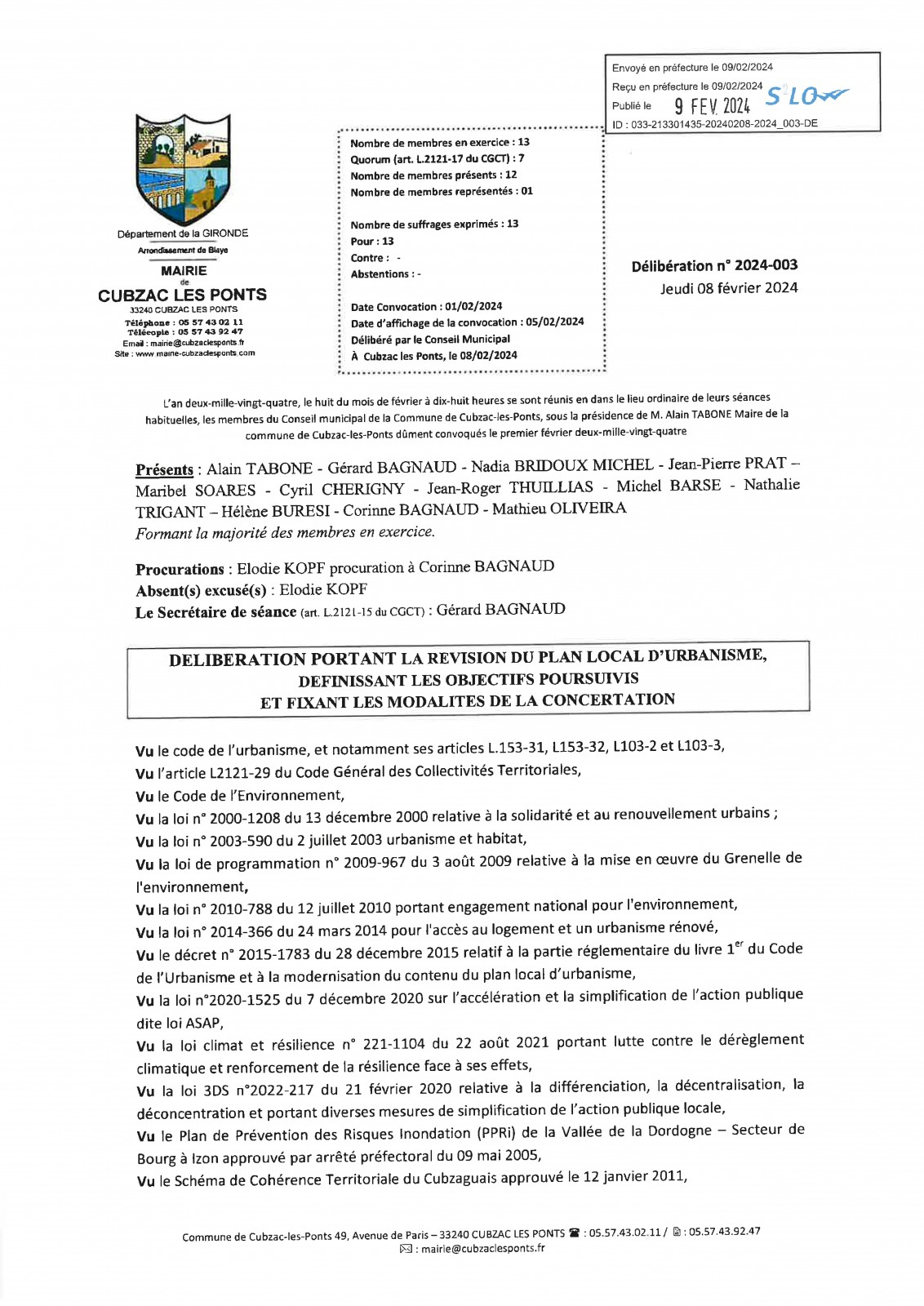 La commune de CUBZAC LES PONTS a immédiatement déposé la demande de reconnaissance de l'état de catastrophe naturelle.