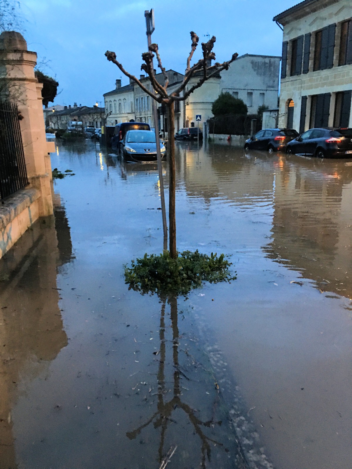 Ce jeudi 19 février, vers 7 h00, la Dordogne est passée au dessus des digues du port et a inondée la rue du port jusqu'à celle de Conseillant.